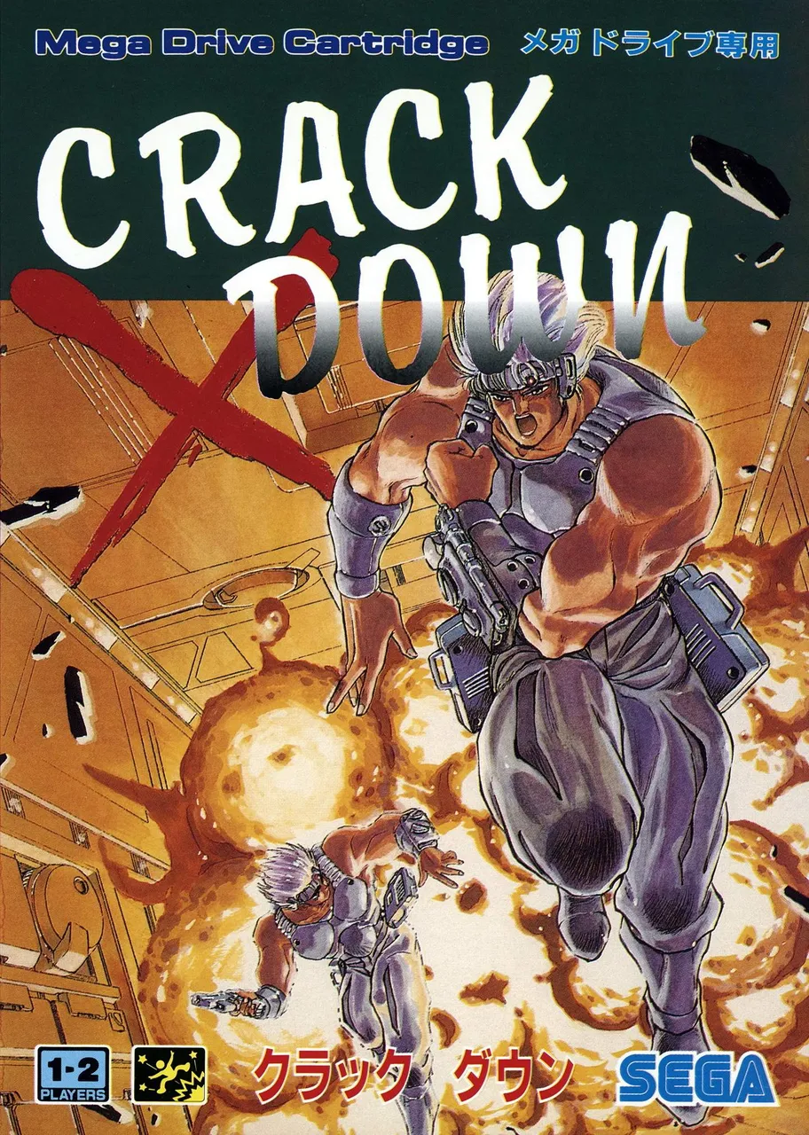 Crack Down is a time-limited action game. The two heroes, Ben and Andy, have to get through the levels as quickly as possible placing bombs on X marks scattered around the levels. Although the levels are heavily defended, the player has an array of weaponry including a cannon, machine gun, and superbombs.